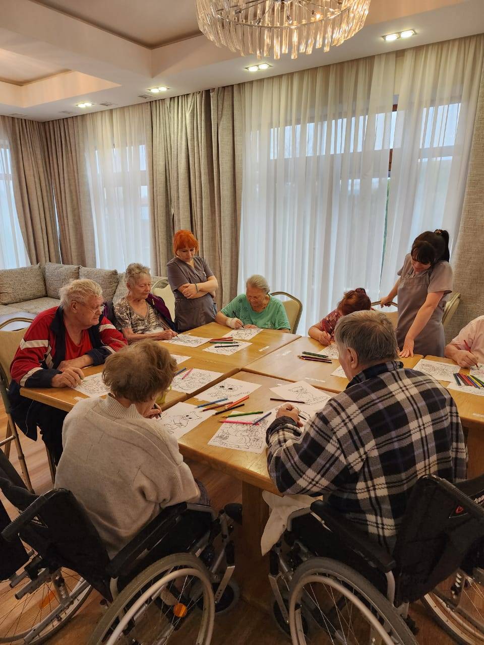 Мы организуем оздоровительную гимнастику, занятия лечебной физкультурой, развлекательные активности, душевные чаепития, интеллектуальные игры за столом. Особое значение придаём психологическому комфорту жильцов, живому общению, моральной поддержке и чувству принадлежности к дружному сообществу.